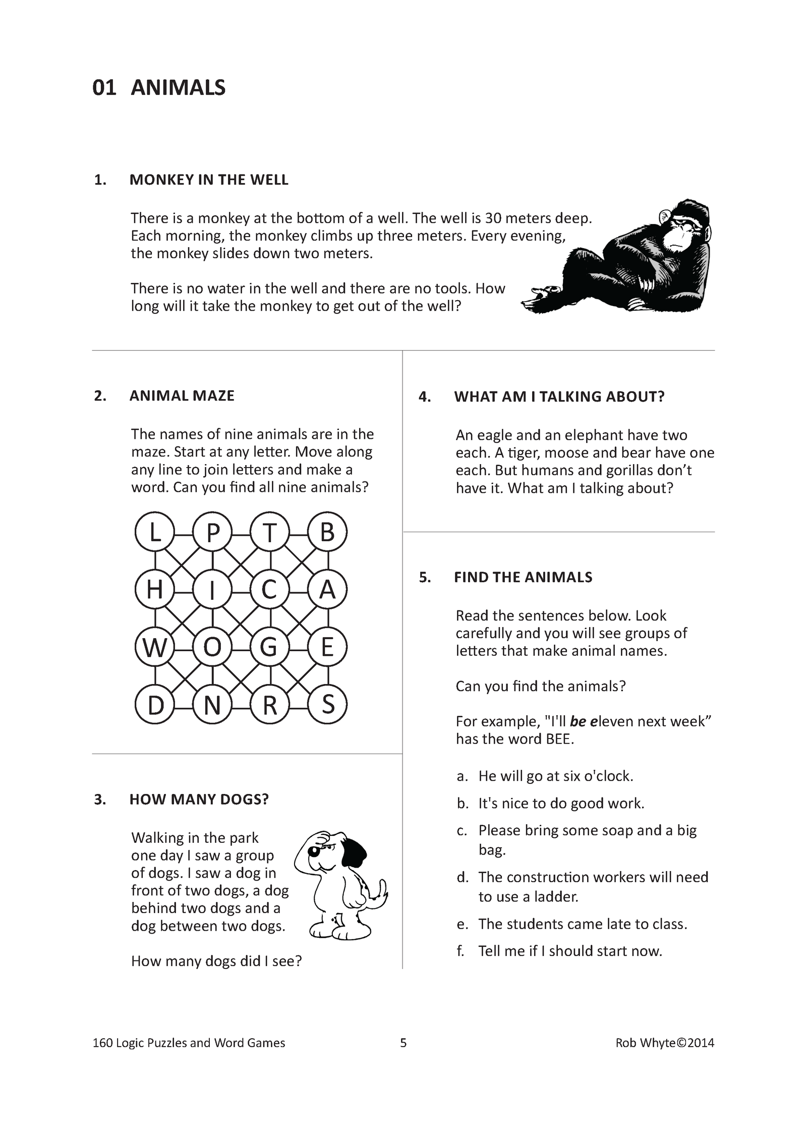 Logic puzzles and word games are a great way to focus student attention on reading comprehension and problem solving. Most puzzles range from easy to challenging with a couple of tough ones for the smart kids.
